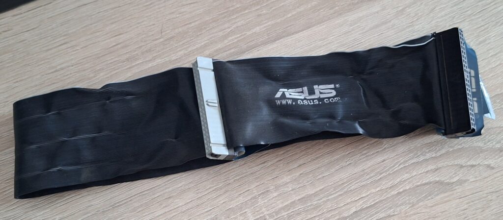Do okablowania dołączą dwie taśmy ASUS, jedna do napędu płyt, druga do napędu dyskietek. Chyba wolę się nie przyznawać ile zapłaciłem za nie na aukcji jakieś 10 lat temu…