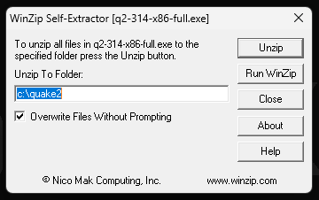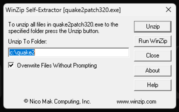 Po rozpakowaniu zawartości archiwum instalujemy najpierw q2_314, a następnie q2_314-x86-full. Instalacja odbywa się poprzez rozpakowanie zawartości do katalogu z grą (należy wskazać właściwą ścieżkę docelową).