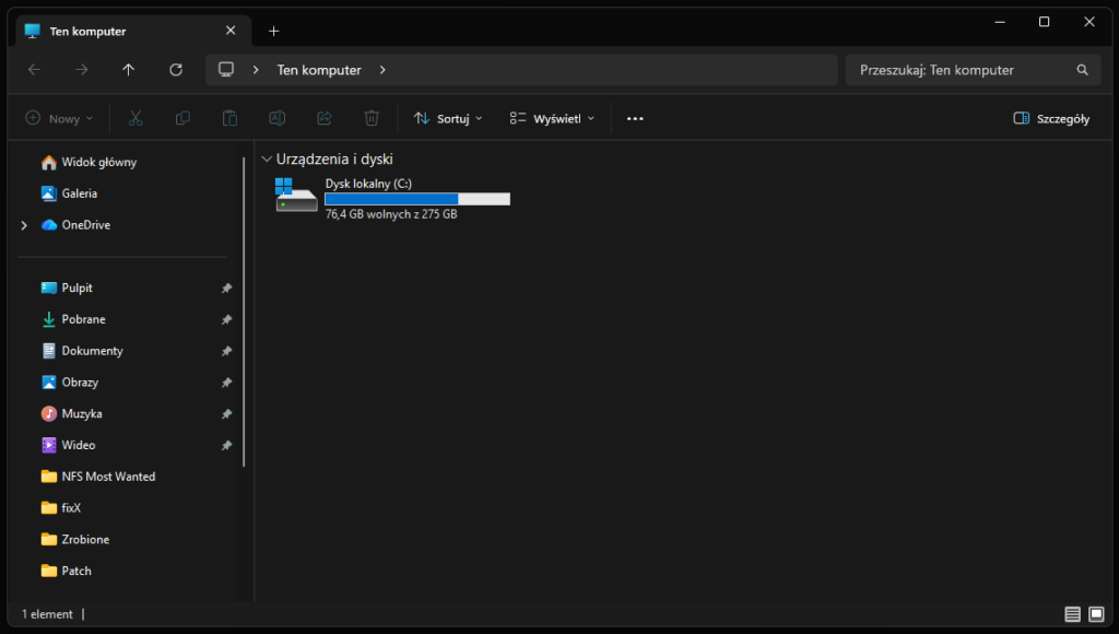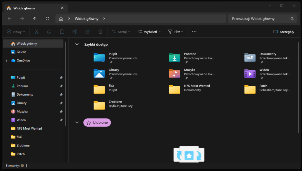 Pora na coś, co dla wielu jest bardzo uporczywe, czyli zmiana lokalizacji, na jakiej otwiera się Eksplorator. Domyślnie jest to tzw. Widok główny, skąd teoretycznie możemy przejść wszędzie, a tak naprawdę prawie nigdzie. Najważniejsze, czyli Ten komputer i Pliki użytkownika są stąd niedostępne. Na szczęście jednym kluczem możemy przejść do automatycznego otwierania lokalizacji Ten komputer. W tym celu odszukujemy klucz: